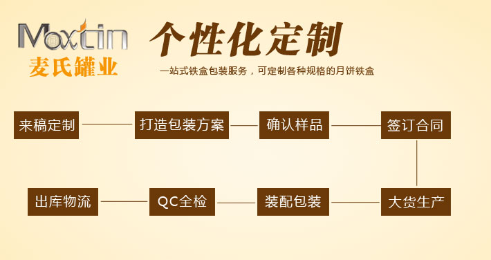 在生產(chǎn)創(chuàng)意手提月餅鐵罐的同時,我司為您提供一站式鐵罐包裝服務(wù),包括提供鐵罐所用的內(nèi)托、手提、鎖扣、禮品袋、標牌、真空袋、刀叉(亞克力瓶、流蘇、塑膠蓋)等配件產(chǎn)品。省時省力為客戶節(jié)約鐵罐生產(chǎn)時間,減少生產(chǎn)制作成本。真正做到效率、標準、成本的鐵罐包裝產(chǎn)品。