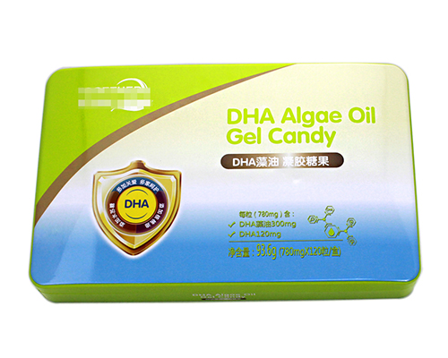 此款DHA凝膠糖果鐵盒包裝采用方形外型,內卷線蓋,身縮口,扣底蓋結構,使其密封性能得到進一步的提升,盒身為一片鐵沖壓制成,經過扣骨處理,無飛邊劃手現象。底部為外卷線鑼底。350*220*55mm的規格尺寸,您也可以定制圓形、異形、三角形等其它精致盒型,多樣化的滿足您對鐵盒方面的要求。