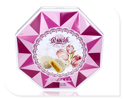 這款大酒樓月餅包裝鐵盒,版面設計為厚重得體的設計風格,銷售對象多數(shù)是禮品 。而這款月餅鐵盒的印刷工藝多樣化,在0.23mm的馬口鐵上過白油(可過白瓷),再根據(jù)您的印刷設計要求印刷各種精美圖案,印刷后的鐵料正反兩面再次過上一層光油。蓋子中間有圓形開窗設計,完全符合鐵盒的使用理念,盒蓋為外卷線天地蓋。鐵盒可包裝大約八只月餅產(chǎn)品。