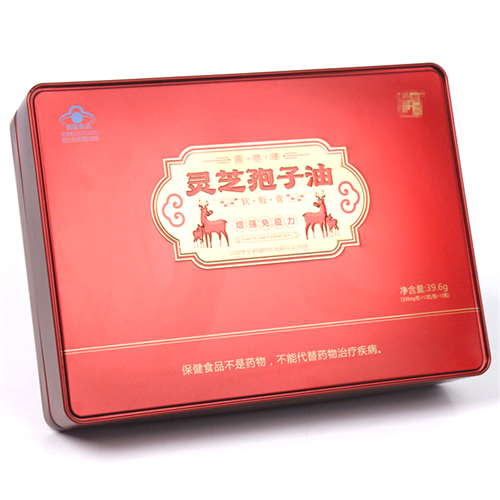 • 方形靈芝孢子油鐵盒_馬口鐵保健食品鐵盒包裝定制工廠
