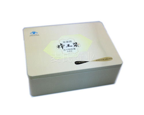 此款蜂王漿含片鐵盒子繼蜂王漿粉鐵罐子又一新力作,由醫(yī)藥鐵盒加工廠家-麥?zhǔn)瞎迾I(yè)自主研發(fā)制造。長方形的外觀結(jié)構(gòu),人性化的天地蓋設(shè)計(jì),可省下配套的手提禮袋的制作成本,外觀大方,可當(dāng)做節(jié)假日贈(zèng)送友人、同事、親戚的選擇。