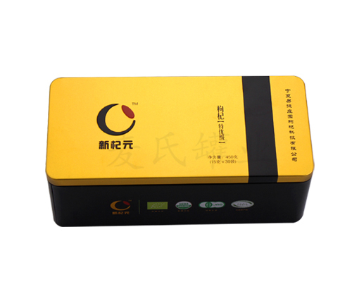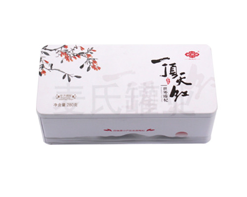 此款枸杞子禮品盒,所選用的基材為鍍錫馬口鐵精心打造而成,具有良好的抗壓能力,鐵盒整體是經過精心選料、裁剪、沖壓、包裝等制罐環節嚴格處理,全程>QC檢控生產,讓您放心使用!