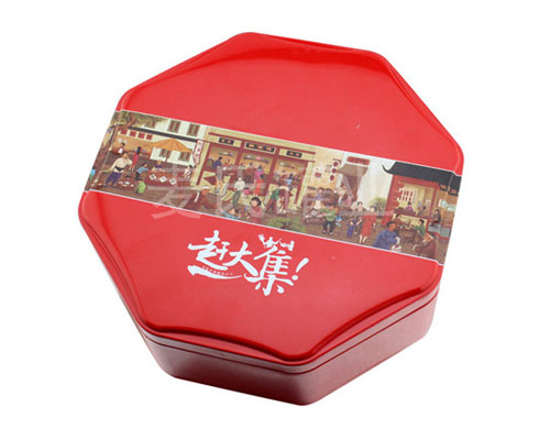 這款異形中秋月餅鐵皮盒子形狀為經典大氣的八角形造型生產,屬于異形月餅鐵盒系列,此款月餅鐵盒的規格為270mm*270mm*78mm,可包裝四個裝、六個裝的冰皮月餅、蓮蓉月餅、伍仁月餅等中秋月餅產品。